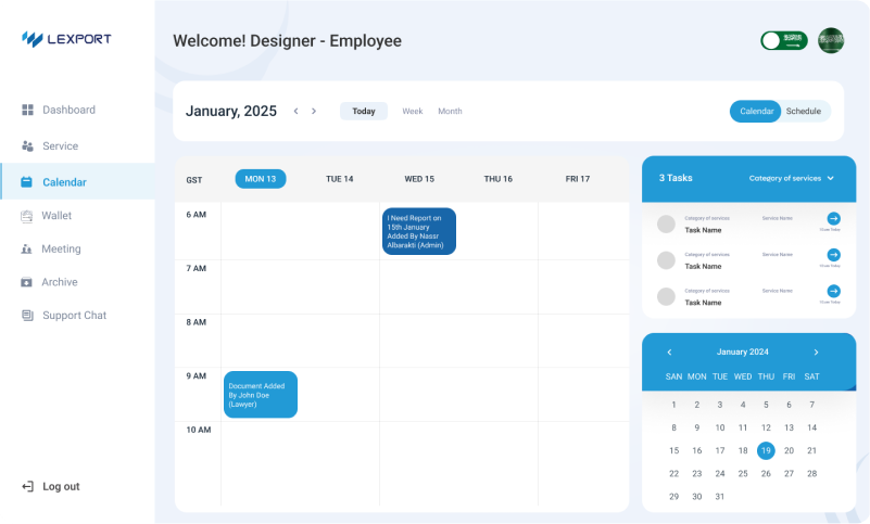 Every element is designed in Arabic, with an intuitive UI that allows lawyers, teams, and clients to navigate and work efficiently — with zero friction.