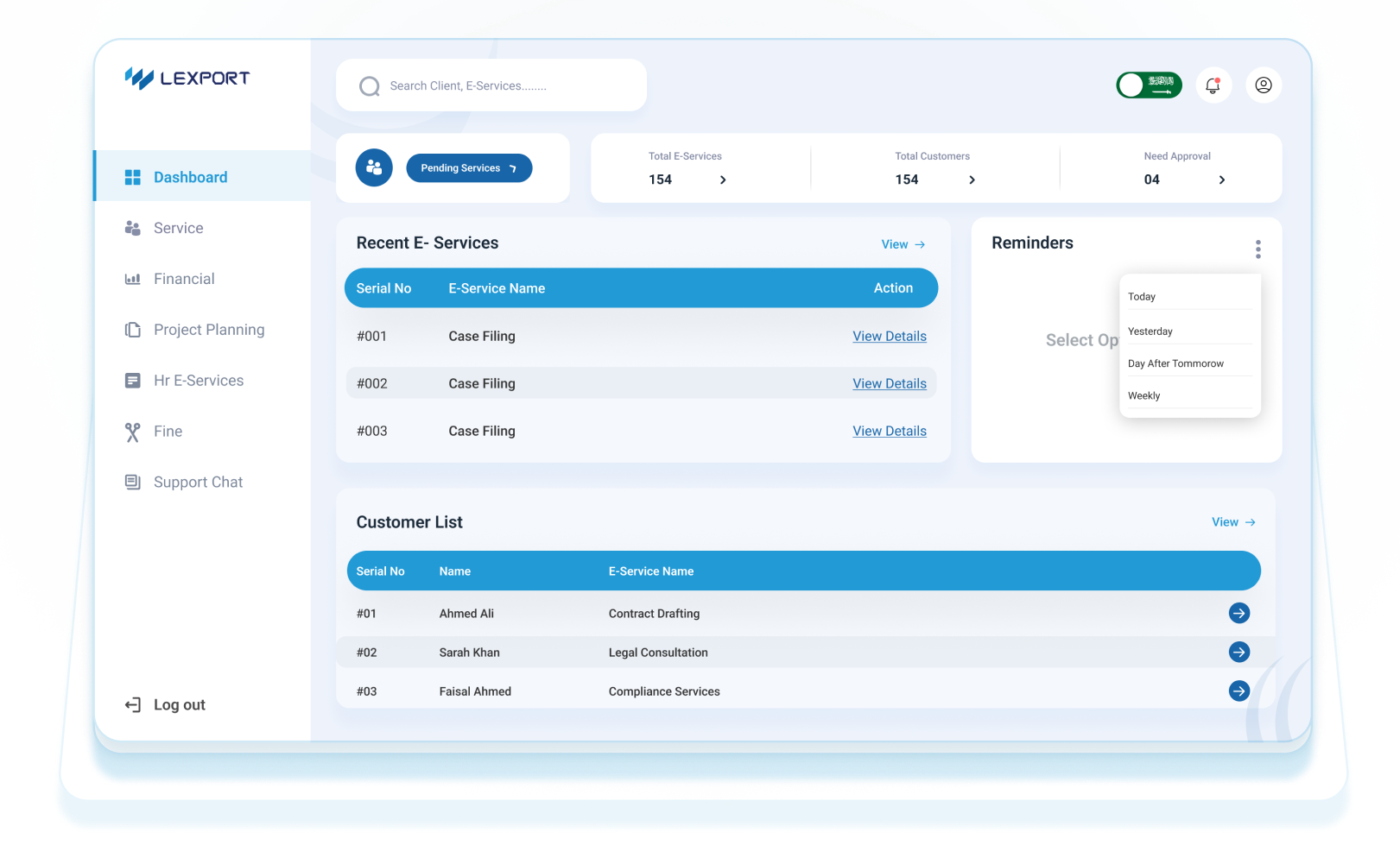Allow your clients to submit legal requests, track their progress in real time, and access related documents and updates anytime.