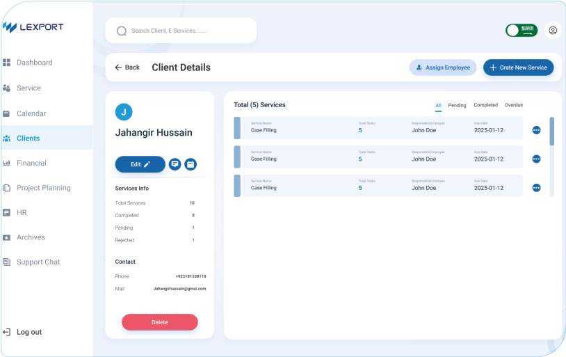 All client documents and service requests in one place, with real-time updates and full transparency into service progress.
